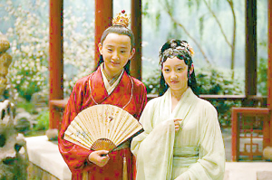 有一次拍到賈寶玉吃丫環(huán)嘴上的胭脂,“小寶玉”突然發(fā)脾氣,死都不肯合作。導(dǎo)演李少紅問他為什么,他哭喪著臉說:“這丫環(huán)長得太丑了,我可不想把自己的初吻給她!”說著,他就跑出去,號稱“要趕緊先把自己的初吻獻(xiàn)出去”。當(dāng)然他只是說說而已,當(dāng)時大家慫恿他去親“林妹妹”或“寶姐姐”,他聳聳肩:“導(dǎo)演知道了,還不打斷我的腿!”