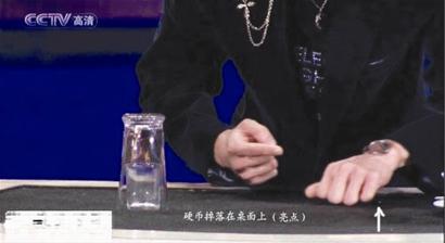 這個魔術,實際上董卿是個托,因為魔術不涉及職業道德的問題,只要給觀眾一個驚喜就可以了,董卿在兩個硬幣上簽名,當然字體和樣式要相近,私下里簽好的早已經給劉謙了。這時,硬幣掉在了桌面上,細心的觀眾可以明顯的看到硬幣的反光。