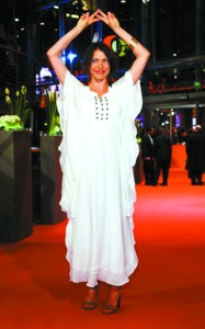 女星耶娜·帕拉斯克,身穿搖曳白裙,頭上插根羽毛,簡直是“雷人”沒商量。興起時還不忘兩手舉過頭頂,做勝利狀。妮娜·海根則是“雷”冠全場的女星,她頭戴大花化成印度妖女模樣在紅毯上張牙舞爪,敢穿成這樣也是需要勇氣的。
