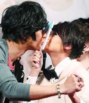 至于偶像劇《愛就宅一起》前日也在臺北舉行首映會,還是單身的楊丞琳和汪東城就在現場玩起了“安全之吻”。應主持人要求,親吻長度將是收視率數字,兩人為了有好采頭,硬是吻了15秒,讓臺下觀眾拍掌叫好。