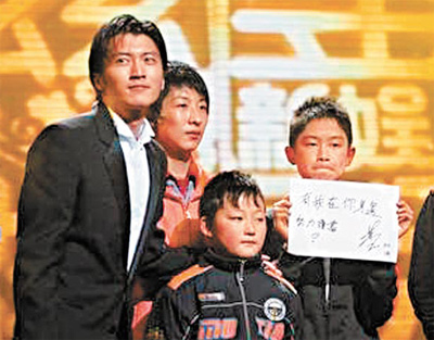 霆鋒多年來一直資助50名內地失學兒童,前晚大會安排頒獎給霆鋒的5名兒童,皆來自四川地震災區都江堰,且全是由霆鋒資助上學。近一年來備受家事困擾的霆鋒,首次見到自己捐助的小孩,頓時百感交集,他緊緊地抱住這些小朋友,然后眼濕濕哽咽說:“每當我拍戲受傷或者心情低落時,我就會想自己不能倒下,可能有50個家庭靠我給他們一頓飯吃。因為認識了他們,我才知道自己有多幸運,同樣是黃種人,為什么謝霆鋒可以追逐自己的夢想,他們卻沒有這個機會。”最后他更鼓勵小朋友說:“叔叔不怕痛和累,你們也不能放棄。”