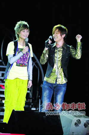 林俊杰成為了本場演唱會的神秘壓軸嘉賓。他不僅帶來了自己的《小酒窩》,還在臺上和李宇春同場競技,表演火爆動感的斗舞。林俊杰手拿道具槍連番向四周掃射,氣勢不遜江湖大哥;李宇春一身運動裝扮,在蹦床上展示動感青春舞姿。二人默契的配合和各自的精彩演繹掀起了演唱會的高潮。記者 齊帥 實習生 史迎利