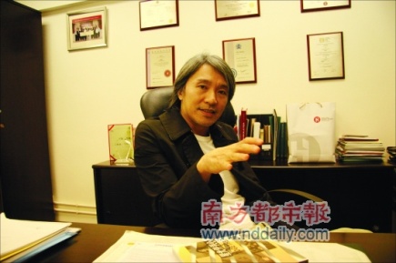 25日晚上九點(diǎn)鐘在寫字樓找到星爺。是他約在這個地點(diǎn)見面的,他和同事開會還沒結(jié)束,但為了這次是非,不得不見一見記者。當(dāng)記者在他的辦公室見到他時(shí),星爺一面倦容,滿面須根,問他是否受到打擊,情緒落寞,不修邊幅?