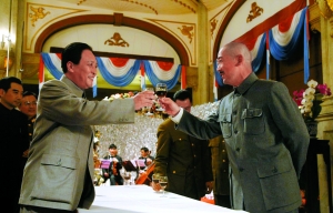 雖只有一場戲、三句臺詞,但身著深藍色軍裝的李連杰依然一絲不茍地拍了不下5條。據李連杰介紹,他扮演的陳紹寬原是國民黨海軍上將,在抗日戰爭中立下汗馬功勞,但不愿參加內戰,“中國人打中國人?這事我做不得”,最后向蔣介石遞交辭呈,“卸甲歸田,回福建養老去”。李連杰片酬高達上千萬美元,但零片酬參與該片一方面是感謝中影集團長期對壹基金的支持,另外一方面他也認為“陳紹寬反戰挺像我的,我也是個愛好和平的人!绷硗,他還透露《建國大業》上映后,每張電影票將有1分錢進入壹基金。