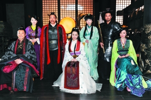臧金生飾演的秦始皇和李易祥飾演的劉邦兩個(gè)皇帝在臺(tái)上見面,相互之間特別客氣。