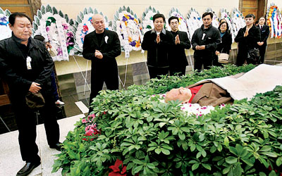 由于前來祭奠的群眾和媒體太多,告別廳門口一度被堵了個水泄不通。