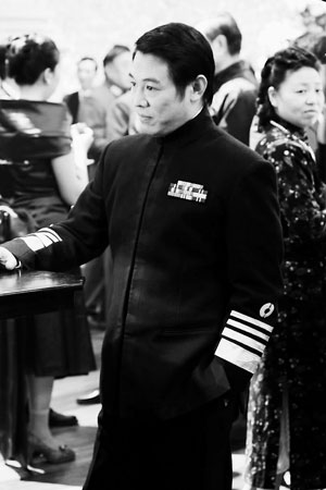 李連杰飾演的國民黨海軍一級上將陳紹寬近日在媒體上曝光。他身著一套深海藍色的中山裝式的海軍禮服,袖子上帶有明黃色的軍官袖標,沒有肩章,胸口則別著彩色的軍章。執行導演說,李連杰這次是超級“龍套”,在片中只有3句對白。