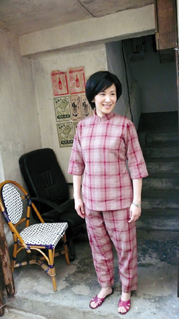 吳君如則比較顯眼,她穿著一身紅格子老式服裝,頭發(fā)是特意粘的假發(fā),很茂盛地搭在額前。她的腳上跟任達華一樣蹬著塑料拖鞋,身材看上去略有些發(fā)福。吳君如的妝化得挺濃艷,看上去跟環(huán)境有點不搭調(diào)。任達華卻十分自在,到處跟人聊天,演他們兒子的小演員———在《大搜查》里演陳奕迅兒子的鐘紹圖遠遠跑過去,很響亮地喊他“老竇”,他也很從容地回了一聲“哎”。