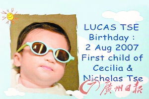 09年的愚人節,張柏芝抱愛子追憶張國榮,悼念片段中更抱起Lucas出鏡,又兩度問兒子“這部戲誰做呀?”,小Lucas響亮地答:“哥哥!”十分可愛。