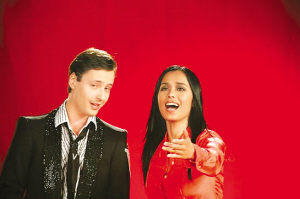 韋唯與維塔斯在錄音棚初次見面氣氛就相當(dāng)融洽,盡管兩人語言不通,但維塔斯施展的耍寶逗樂功夫讓韋唯忍俊不禁。兩人面對鏡頭進(jìn)入狀態(tài)很快,尤其是在對唱時(shí)更加自然親近。記者 俞亮鑫