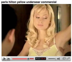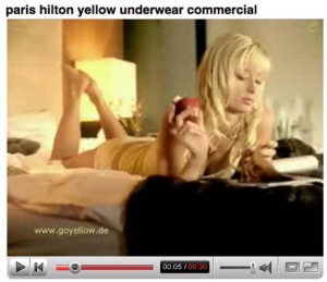 《世界新聞周刊》筆者在報(bào)道中戲稱希爾頓為“能吃掉男人的酒店業(yè)女繼承人”。廣告片里的希爾頓一頭淡金黃色的頭發(fā),身穿短得不能再短的內(nèi)褲,上身則搭配了一件同色系的比基尼內(nèi)衣,通身都是誘人的鵝黃色。