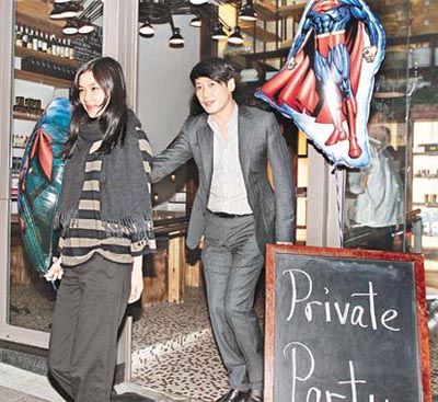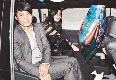 中新網(wǎng)12月12日電 黎明與樂(lè)基兒相戀三年如膠似漆,昨日黎明41歲生日,特地從北京趕回香港與女友慶祝,壽星剛抵港已遭半百fans包圍送禮送紅包。黎明晚上與樂(lè)基兒狂歡后離開(kāi),樂(lè)基兒手持“激凸超人”大氣球助興。