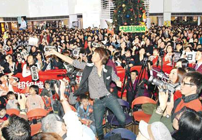 昨午在新港城中心舉行簽唱會的Danson大耍迷人功,當Fans大膽贊他的臀部夠翹,他即說:“你碰過還是你看過?上次在機場摸我那個人是不是你?”他又細心安慰在臺邊感動流淚的Fans。收到Fans送上豬仔儲錢罐時,他還笑問Fans是不是當他是豬,Fans說:“我當你是寶貝豬呀!”對于熱情的Fans,Danson大為感動,謙虛地表示視羅志祥和小綜為前輩,不會比較簽唱會成績。