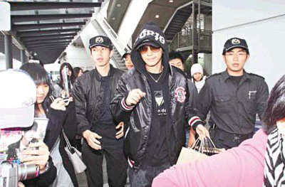 據香港太陽報報道,昨晨10時許小豬抵港,歌迷不怕寒冷天氣前往接機,并舉起“亞洲舞王”紙牌迎接偶像,包著頭的小豬在助手陪同下出閘,歌迷即一擁而上將他圍住,唱片公司特別安排了4名保安開路,小豬此行只留港3日,但工作人員推著6大箱行李緊隨,問到小豬是否很疲倦?他笑著說:“OK啦!”由于昨日不是假期,小豬接過歌迷的禮物后,即緊張地說:“你們不用上學?請假了嗎?”歌迷沒有回答,但小豬仍表現親民,與歌迷打成一片,有講有笑。