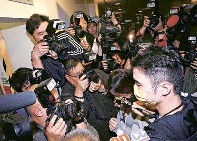欣宜則于7時(shí)許再折返醫(yī)院探媽咪,現(xiàn)場聚集了數(shù)十名記者,故醫(yī)院方面也派出4個(gè)保安為她開路。欣宜戴上口罩,幾經(jīng)辛苦才能沖過人墻入病房,她并沒有接受訪問。