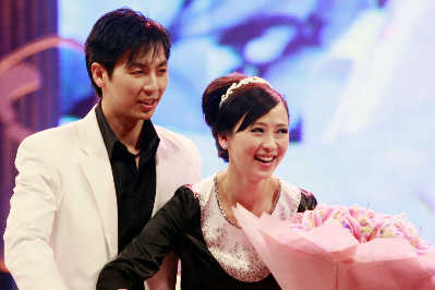 翁虹偕夫婿劉倫浩領取了“健康活力家庭”獎。去年喜得貴子的兩人,看起來仍像熱戀時一般。這對父母極愛“獻寶”,不但在節目錄制時放送一段全球首播的寶寶DV,翁虹還在后臺向眾人展示手機中的寶寶照片。最近工作忙碌的翁虹抱怨:“我忙到連為家人煮一頓飯都成了奢侈的事情。”她表示為了照顧家庭,將考慮暫時息影:“現在一出門工作就會想她,出來兩天就想回家。短期內我只會接一些不會離家很久的工作,暫時沒有想要拍戲。”她還透露目前最大的目標就是養好身體,再生第二胎。