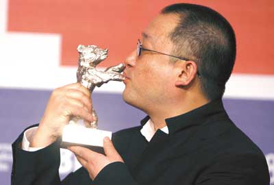 《左右》拿了銀熊獎,連導演王小帥都沒有想到。頒獎臺上,評委戴安·克魯格把銀熊遞到王小帥的手里。王小帥先是給了評委克魯格一個禮貌的擁抱,然后把銀熊舉到左邊與臉相平的位置,輕輕一吻。時間定格在這一刻,王全安在柏林、李安和賈樟柯在威尼斯,用的都是同一種姿勢親吻代表最高榮譽的獎杯。