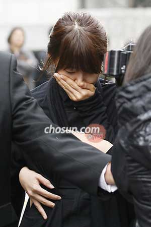31日上午9時在首爾大峙二洞教堂舉行了著名演員李東健弟弟的葬禮彌撒。李東健的前女友韓智慧流著眼淚走出教堂。(圖片來源:韓國《朝鮮日報》)