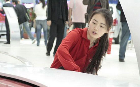 2008北京車展4月23日剛剛落幕,“最美清潔工”迅速走紅網絡。這位躲在車展角落毫不起眼的清潔工美女,在有心人士的偷拍下,她清秀的素顏照讓眾多濃妝艷抹的車模黯然失色。照片一經放到網上就引來網友熱捧。不過,近日此女真實身份曝光,清秀瘦弱的清潔工美女原是北京現代音樂研修學院管理專業的大學生,真名于洋,還在暑期大片《赤壁》里扮演宮女。一個藝術學院的學生為什么還要跑到車展當清潔工?隨著于洋真實身份的一步步曝光,這位新晉網絡紅人遭來越來越多的質疑:不僅被指出于洋背后有網絡推手的高明炒作,甚至昨日也有網友專門撰寫評論,炮轟這是《赤壁》制片公司的炒作。