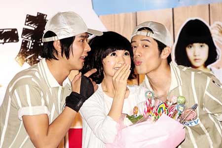 在新劇中飾演“宅女”的楊丞琳表示,她是首次飾演這樣內斂的角色,也是一種挑戰。劇中,她將與飾演偶像明星的汪東城以及飾演青梅竹馬好友的胡宇崴有一段錯綜復雜的三角戀情。問到楊丞琳對兩個男生有什么印象,無厘頭的她竟回答:“我覺得他們一直在對我用力。”她透露,第一次見到大東時,她主動找他攀談,他卻一臉酷樣不理人。對此沒印象的大東連忙澄清:“可能是我在團里被要求耍酷,不能講話吧。”大東說他媽媽很欣賞楊丞琳:“我跟她同樣都是一出道就要幫家里背債,她已還完債并買了新房子,現在我的房貸也快還清了,正在找新房子。”楊丞琳聽完馬上說:“我家那邊還有空屋,歡迎來當我的鄰居。”
