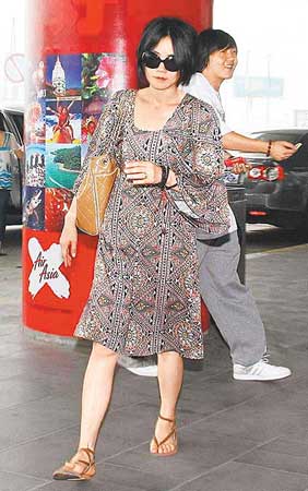 身穿寬松洋裝 王菲小腹微凸探病童(圖)