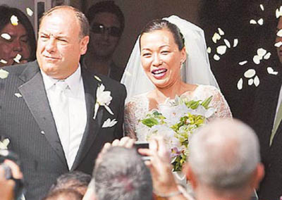 中新網9月2日電 熱門美劇《黑道家族》(Sopranos)男主角詹姆斯·甘朵菲尼(James Gandolfini)上周六梅開二度,在前模特兒黛柏拉·林(Deborah Lin)的家鄉夏威夷檀香山迎娶她。詹姆斯的8歲兒子當他的伴郎,消息人士形容:“他們深情接吻,看起來非常幸福。”