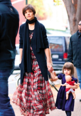 美國紐約當?shù)貢r間11月24日下午,凱蒂·霍爾姆斯帶著她和阿湯哥的寶貝女兒蘇瑞在街邊漫步,蘇瑞吃一個杯狀點心時,滿臉沾著巧克力,十分可愛。