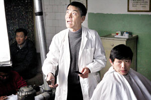 昨天在片場(chǎng),劉威(右二)一條戲拍了大半個(gè)小時(shí) 攝/記者張寧