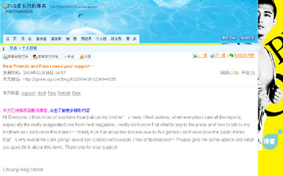 除了拖累個(gè)人事業(yè)外,他也間接連累了哥哥黃長(zhǎng)興。昨天,黃長(zhǎng)興在博客中大吐苦水,他坦言看到弟弟的新聞,覺得自己很沒有用,雖然信任弟弟深愛Karen,卻不知道公眾的想法,而他近日外出時(shí)也要逃避與路人有眼神接觸,希望粉絲給予意見,又感激大家的支持。