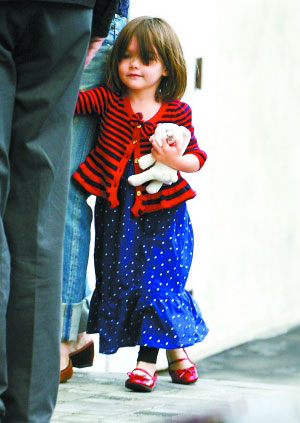 昨天,加州圣塔莫尼卡,阿湯嫂凱蒂帶著女兒蘇瑞和貝克漢姆的兩位小公子一起到兒童藝術中心觀看展覽。據悉,凱蒂目前正在設計童裝,進軍時尚領域,靈感來自于她和阿湯哥的女兒蘇瑞。凱蒂說她與朋友從一年前就開始一起工作,畫草圖買樣衣。