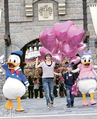 中新網4月20日電 據香港《明報》報道,樂基兒(Gaile)昨日聯同香港社會福利署表揚的多位寄養家庭父母到迪士尼樂園,Gaile套上米奇手套,表現甜美一面。