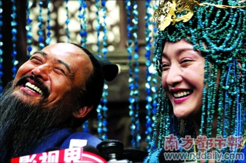 在當(dāng)晚拍攝的戲中,史籍中記載“艷而淫”的南子面帶嬉笑地圍著孔子轉(zhuǎn)圈,在孔子面前跪下。