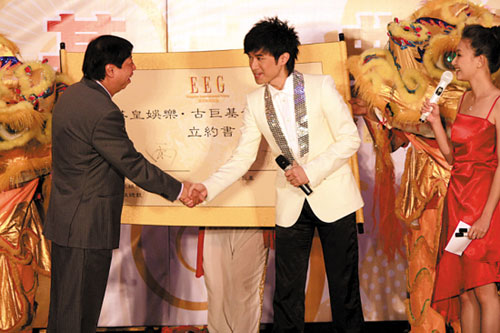 英皇娛樂行政總裁吳雨一邊送上一方印有“古巨基”字樣的玉璽作為賀禮,一邊向古巨基提出要求:“年底要為英皇娛樂爭取拿到一個最受歡迎男歌手大獎!