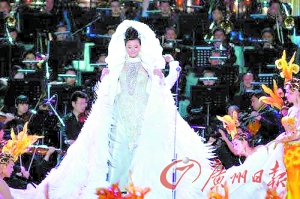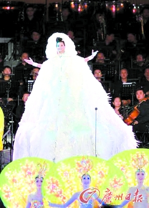 一向給人端莊印象的宋祖英,此次在演出中也換上了六套華服,每一套都可以用“驚艷”來形容。這幾套禮服將中國元素運用得淋漓盡致,造型師還罕見地在頭飾上做了不少變化,為她增添了不少活潑之氣。據悉,這些服裝是中國、意大利、法國、日本等國際頂級設計師聯合制作的。