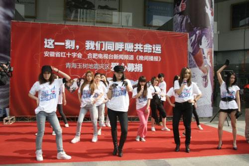 與選手們的想法不謀而合,主辦方粉絲網更無時無刻不在關注著玉樹。選手們如愿加入到由安徽省紅十字會、合肥電視臺新聞頻道《晚間播報》舉辦的“這一刻,我們同呼吸共命運”青海玉樹地震災區愛心募捐義演中。“我們希望通過這種方式告訴更多同胞,只要我們的心在一起,再大的災難也能扛過去。”一位選手說。