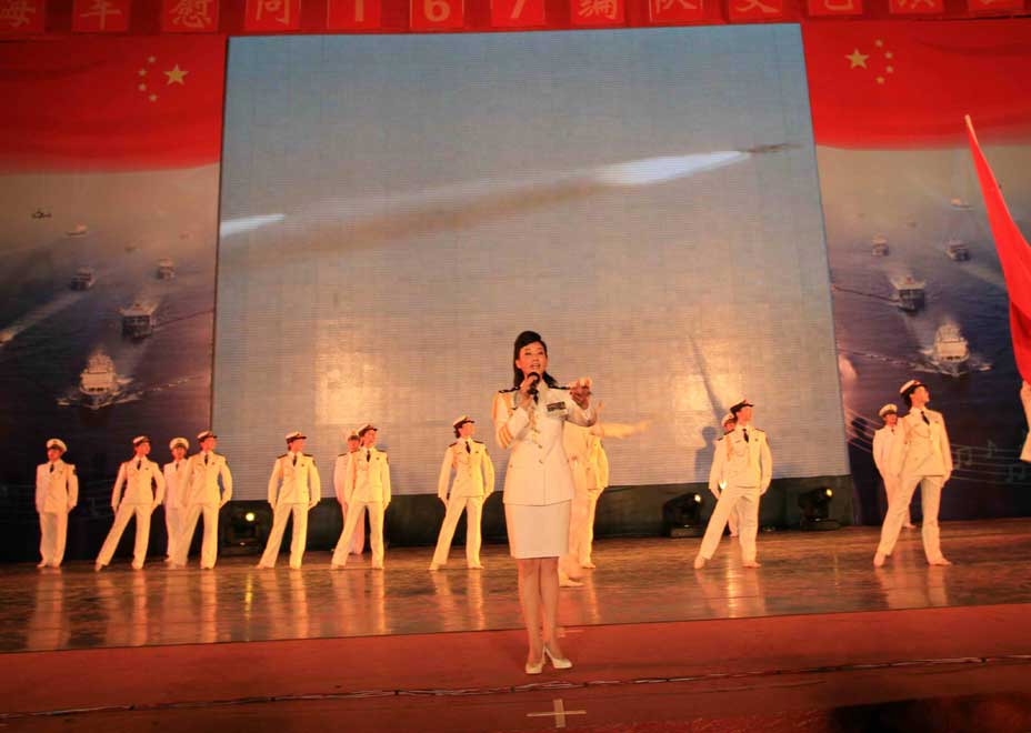 中新網8月22日電 8月21日晚,宋祖英、呂繼宏等多位名星,齊聚南海艦隊某軍港,為剛剛凱旋的海軍第二批護航編隊官兵獻上了一臺精彩的演出。