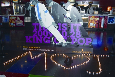 杰克遜粉絲在萬達影城為偶像點上蠟燭。(通訊員 宋牧琳 攝)