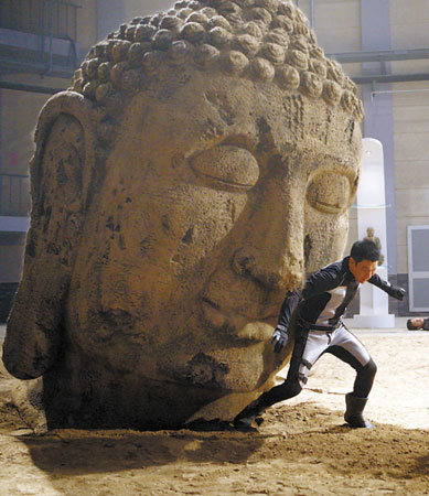 圖文:劉德華拍片被"巨佛"壓住 動彈不得很痛苦