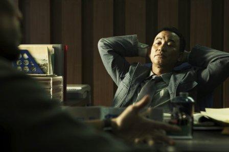 在扣人心弦的音樂聲中,從任達(dá)華關(guān)鎖的雙眉間,似乎可以竊看到剛剛被升為槍擊案專案調(diào)查組組長孫局長內(nèi)心的矛盾和掙扎。這場戲恰如其分地表達(dá)了刑警角色此時(shí)此刻矛盾人生的徘徊心情,導(dǎo)演十分滿意。(麥田)