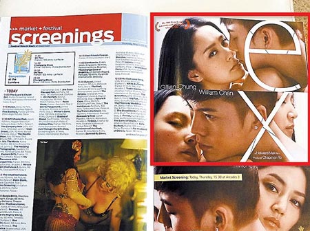 中新網5月14日電 阿嬌(鐘欣桐)因前年受艷照事件影響,事業掉落谷底,她近來以電影《前度》復出影壇,又獻銀幕初吻又和男主角陳偉霆泡鴛鴦浴,力搏翻身。電影公司強打她的電影情欲照,昨天,戛納影展的每日特刊《VARIETY》以及《The Daily》都出現宣傳海報。