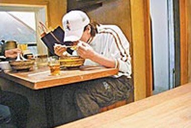 言承旭在日本壓低帽檐吃拉面。