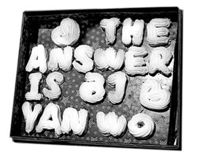 孫燕姿接過盒子,看到餅干上 的 字 :TheanswerisBJyanwo,點頭微笑。