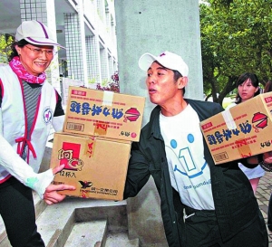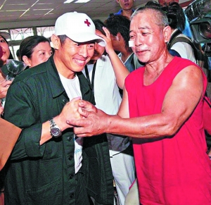 李連杰8月13日起帶著物資深入臺灣災區,為備受超級臺風莫拉克摧殘的臺灣中南部災民及義工打氣。前日他繼續探訪災區,有災民向他哭訴:“我家全沒了!”李連杰趕緊握住他的手給予安慰,場面感人。不過也有輕松的時候,李連杰所到之處,大批災民和義工均蜂擁上前看熱鬧,許多年輕女義工更是尖叫著將他團團圍住,李連杰只能笑說:“這么圍著,我怎么探望災民啊!
