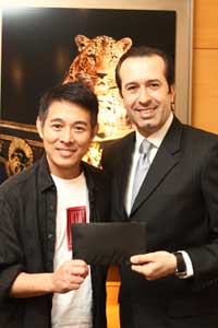 李連杰昨亮相品牌店名店2小時(shí),并從品牌店的新加坡及馬來(lái)西亞董事總經(jīng)理Christopher Kilaniotis手中接過(guò)支票;據(jù)悉,Cartier在本地共籌得3萬(wàn)新元善款,馬來(lái)西亞則籌得3萬(wàn)馬幣(約1萬(wàn)2200新元),整數(shù)4萬(wàn)2200新元支票昨交給李連杰。