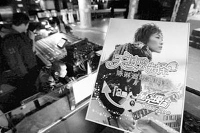 記者上午在星光現場看到,兩張陳琳的巨幅照片懸掛在舞臺上,臺前用將近一千朵菊花和百合花裝點成心形圖案。舞臺正對著的最后面,是陳琳生前發過的專輯的展區,供歌迷悼念。
