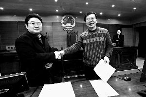 昨天下午,記者來到海淀法院,“鐵蛋兒”及父母均未到庭,中視金環方則在法官宣布調解結果后與華誼兄弟方握手言和,達成和解:“鐵蛋兒”與華誼兄弟簽訂的演出《協議書》改為由上述三方簽訂的演員演出《協議書》;此后中視金環影視文化傳播有限公司不再就此事再行提起訴訟。 (作者 葉青)