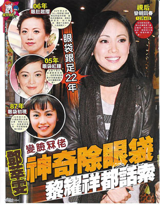 新晉“視后”鄧萃雯最近被香港媒體盯上,不僅和“視帝”黎耀祥傳出緋聞,日前又被某雜志爆出她做了切除眼袋手術(shù),極速“變臉”成功。對此,鄧萃雯解釋這是做面膜達到的美容效果。香港女星“變臉”現(xiàn)象頗為普遍,謝安琪、郭可盈、鄭裕玲等人都被媒體質(zhì)疑做過整形手術(shù),但幾乎無一人承認。
