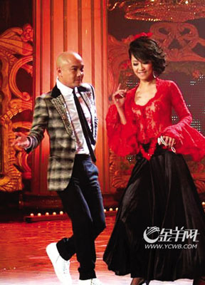 隨后,主持人曹可凡提出讓他們夫妻共舞一曲,兩人尷尬一笑后很配合地扭起了國(guó)標(biāo)舞步。張衛(wèi)健舞技不精,幾個(gè)回合后只好作罷,曹可凡笑稱:“你可以來(lái)舞林墊底了!”觀眾要求兩人重演求婚情景:“來(lái)一段跪地求婚吧!”對(duì)此,張衛(wèi)健卻玩起太極:“跪過(guò)了,今天就不跪了。”最后兩人來(lái)了一個(gè)甜蜜的擁抱。