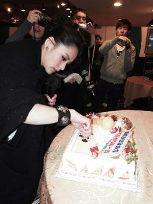 粉絲們得悉阿嬌近日忙于拍戲及籌備新專輯,特意送上寫有祝福阿嬌歌影事業順利的蛋糕。但粉絲又得知阿嬌曾學做蛋糕,對蛋糕要求甚高,故特別設計了一個既可表達粉絲們心意,又能讓阿嬌可即場簽名及自由創作,使兩者心思合二為一的精致蛋糕。