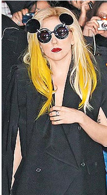 昨天,樂壇百變女王Lady Gaga以米老鼠眼鏡的不尋常造型出席歌友會。她呼吁歌迷上她的購物網購買她設計的T恤,所得將全數捐給海地災民。